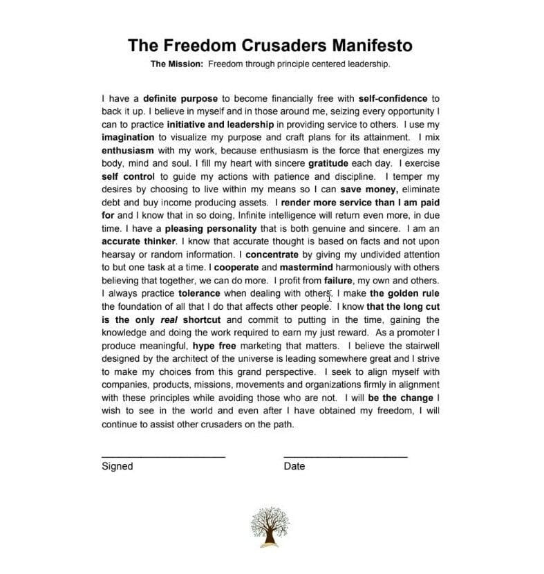 Download and Complete the Freedom Manifesto. Sign & Date, then email to: support@tmiassociates.com