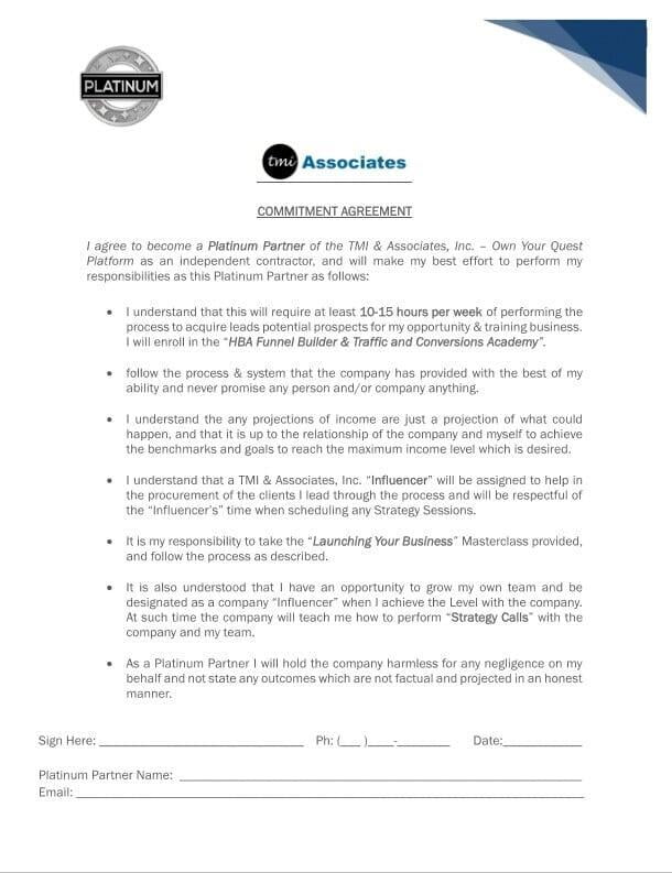 Download and Complete the Commitment Agreement. Sign & Date, then keep for your records